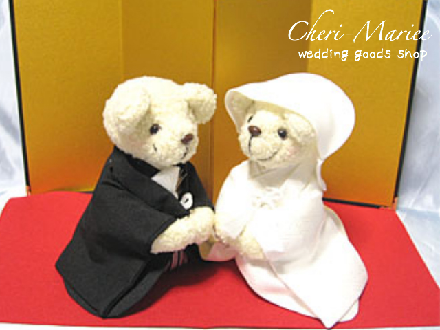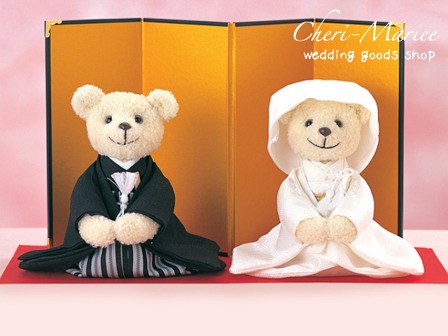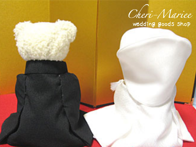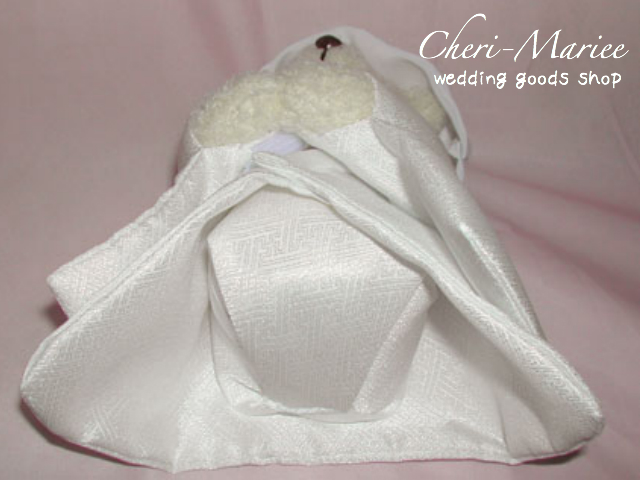 白無垢に綿帽子の和装のくまさんは、ほっこりしたお顔がポイント!
