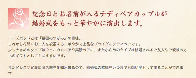 | 商品名 | 品番:PT-315313-sisyu 商品:プレミアムローズベア(M)(ドレスにお名前+記念日刺繍入り) 本体:28500円+税 〜下記の方法でご注文いただけます。〜 (簡単ご注文フォームはこちらから) ↑PDFファイルが開きますので、ご自宅のプリンターで ↑ご都合のよい時間帯に、こちらからお電話いたします。 ↑お急ぎの方は、お気軽に納期目安をご相談ください。 |