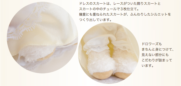 ドレスにお二人のお名前と記念日を刺繍いたします。身長約35cm。