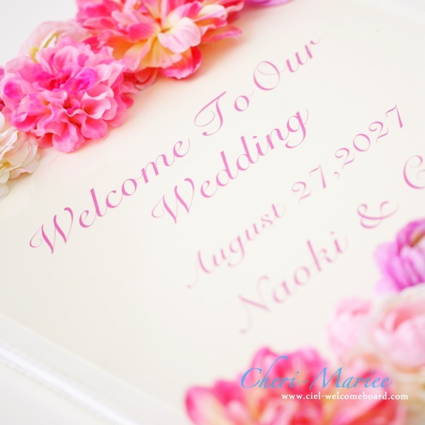 サイズ ※文字カラー、フォントは固定となります。 日付と、新郎様、新婦様のお名前をローマ字で、ご注文時に注文フォームにて入力してください。記入例)Nobuhisa & Yumiko 2014.12.24