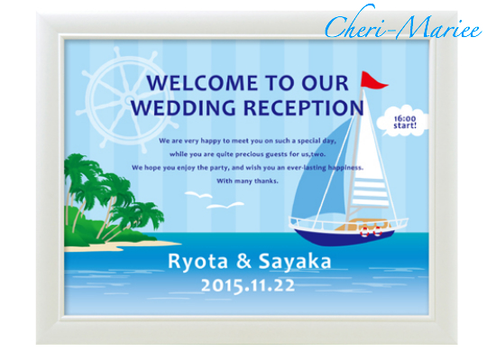 パールの光沢がステキなフレーム入り!夏や海が好きな人のためのウェルカムボード