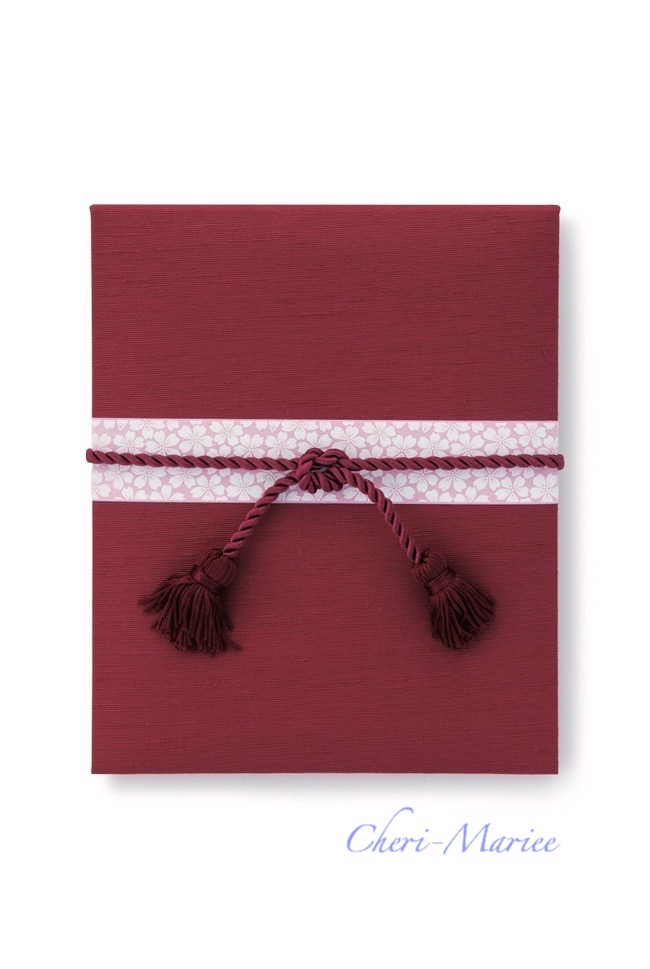 ファブリックのカバーに、房付きの紐が格調高い芳名帳。和婚にもぴったりです。