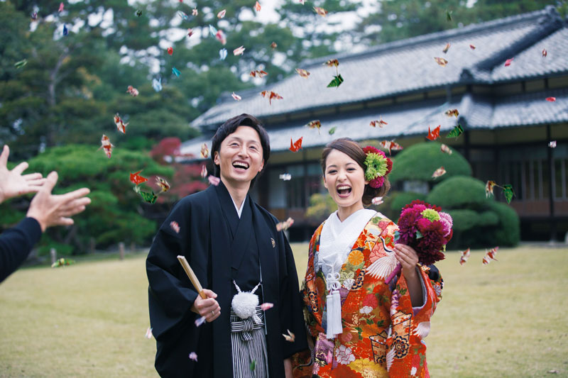和風柄で折った鶴でお二人を祝福できる「折り鶴シャワー」です。