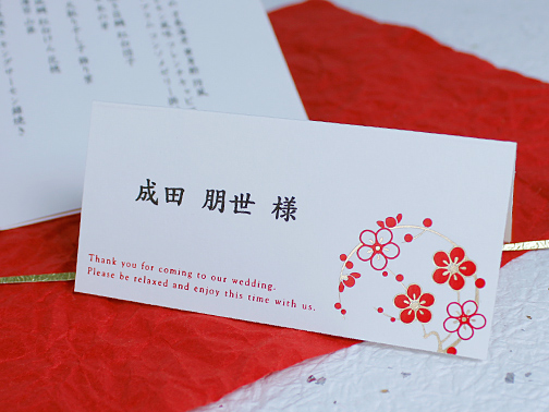 赤白の水引と気品高い梅の花が、ふたりの佳き日を鮮やかに彩ります。