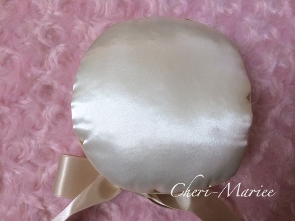 正面横に、あいぼりーベージュのサテンリボンがついています。