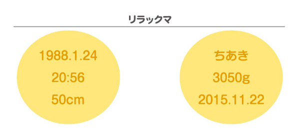 | 待望のリラックマがブライダルシーンに登場です。かわいい「リラックマ」が、披露宴の感動をより一層盛り上げる演出アイテムとして登場です。あなたが生まれた時の体重で作る可愛いウェイトドールです。 ※足裏刺しゅう込み  |